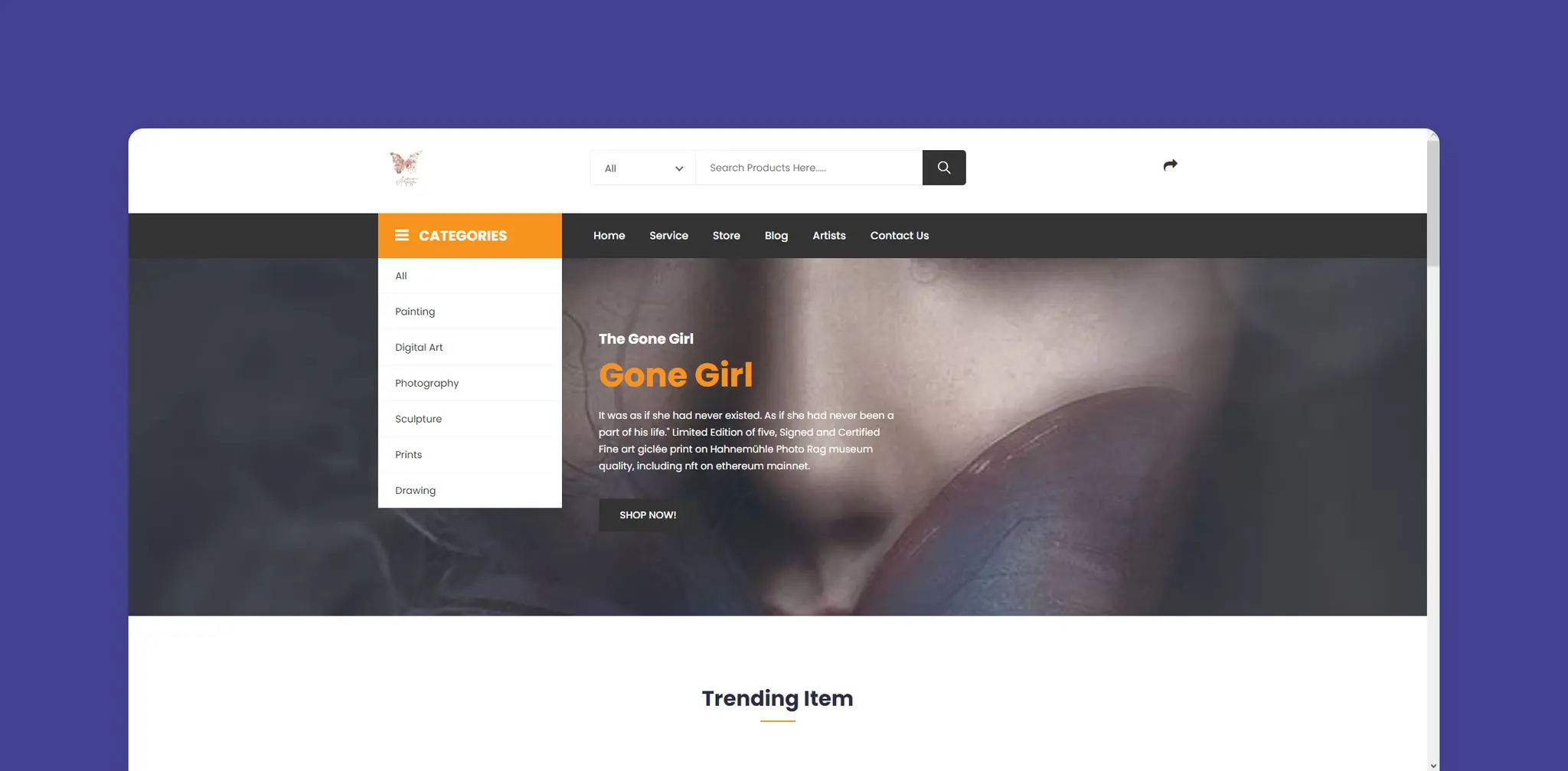 Online digital art marketplace for selling digital art assets including graphics, templates, fonts, and photos. Scalable architecture and optimized digital content delivery.
