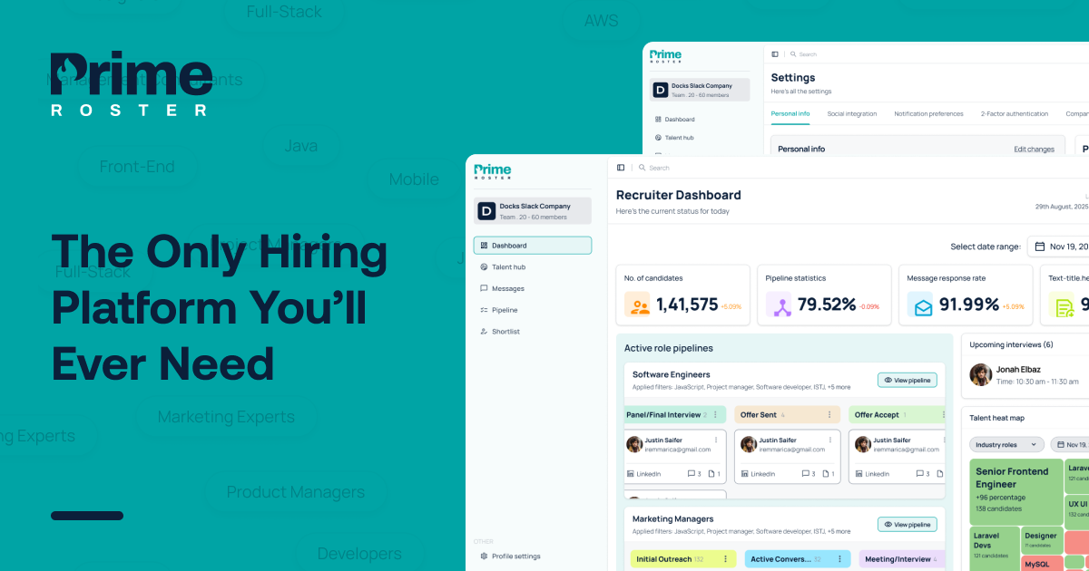 Shipped Prime Roster (AI recruitment SaaS) and 15Fashion to production